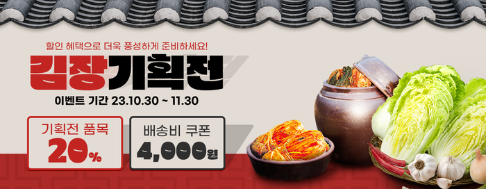 신안1004몰 김장 기획전은 회원 1인에게 20% 할인쿠폰과 배송비 할인쿠폰을 2매씩 제공하며, 10월 30일부터 11월 30일까지 한 달간 실시한다.