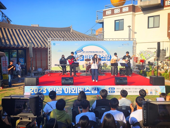 | ▲2023학년도 ‘학생 야외버스킹’ 운영(3일 남구 양림 펭귄마을 야외공원장)/광주교육청 제공 |