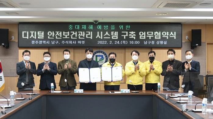 협약 체결에 따라 남구와 ㈜마엇은 중대재해 없는 건강한 사회와 안전한 일터 조성을 위해 사고 예방 및 대응 수준을 한 단계 높이는 디지털 관리 시스템 구축을 본격 추진한다.