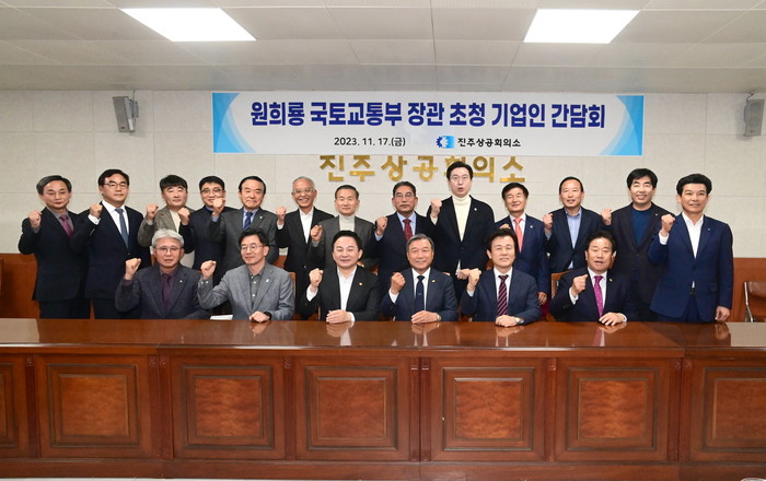 이날 간담회에는 조규일 진주시장, 강민국 국회의원, 김병규 경상남도 경제부지사, 이영춘 진주상공회의소 회장을 비롯한 지역 내 주요 기업인 등 20여 명이 참석했다.