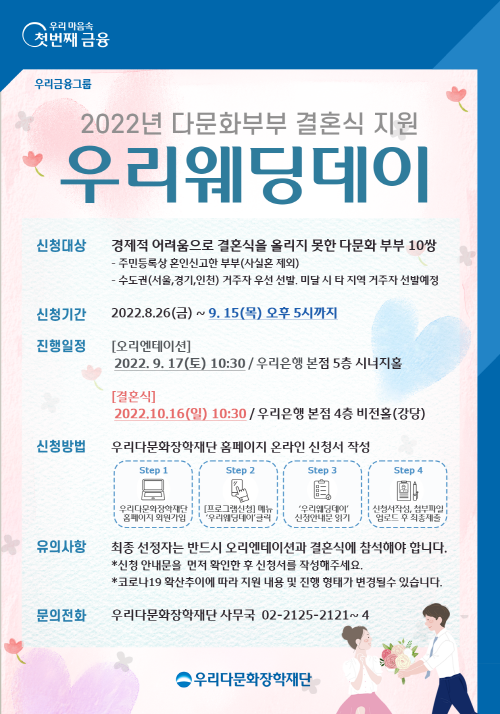 | ▲2022년 제11회 우리웨딩데이 참여자 모집 포스터(사진=우리다문화장학재단) |