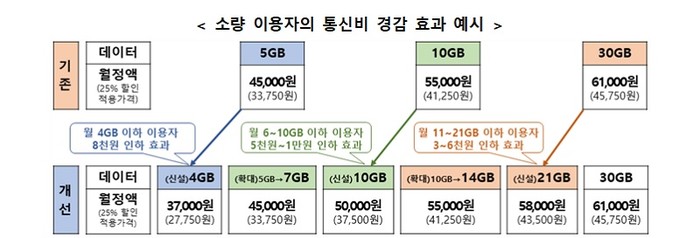 과기정통부는 지난해 11월 마련한 통신비 부담 완화 방안의 후속조치로 통신사와 5G 요금 최저구간을 3만 원대로 낮추고 소량 구간 요금제를 다양화하는 방안을 협의해 왔다.