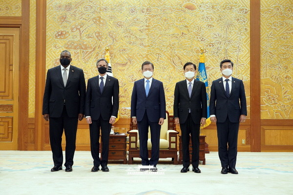 두 장관은 이번 방한이 바이든 대통령의 직접적인 결심에 따른 것이라고도 설명했다. 문 대통령은 양국의 시급한 과제인 한반도 비핵화와 항구적 평화 정착을 위해 한미 각급에서 수시로 협의와 소통이 이루어지고 있는 것을 평가하고, 한미가 함께 공동의 포괄적인 대북 전략을 마련해 나갈 필요가 있다는 점을 강조했다.