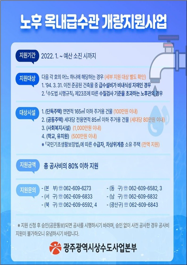 | ▲ 노후 옥내급수관 개량공사비 지원사업 홍보 포스터/광주광역시 제공 |