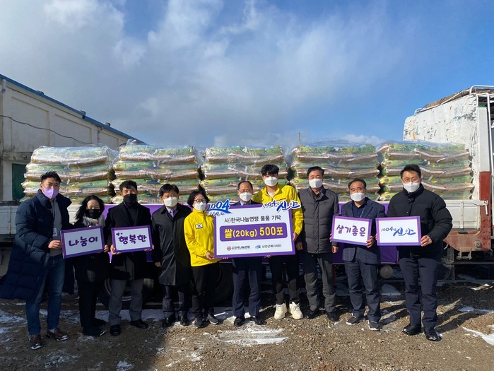 ▲(사)한국나눔연맹(이사장 안미란)은 저소득계층을 위해 3,000만원 상당의 사랑의 쌀 20kg 500포를 기탁했다/신안군 제공 |
