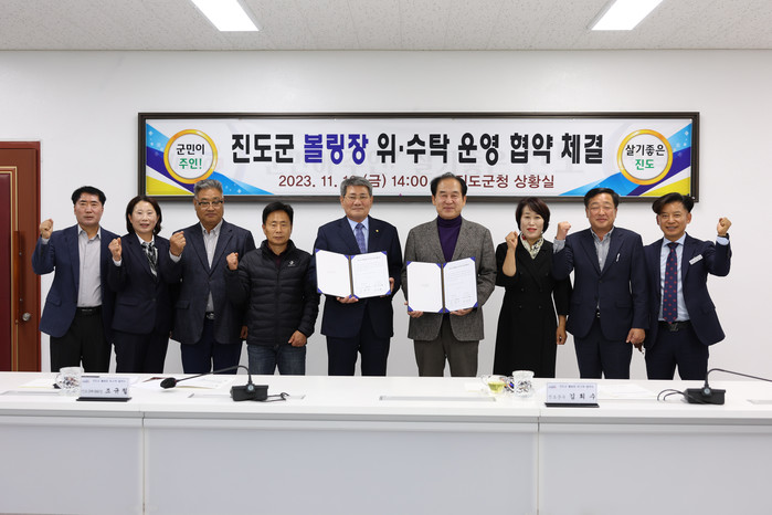 진도군 볼링장 운영 위‧수탁 업무협약식은 볼링장 건립이 완료됨에 따라 전문적인 운영‧관리를 위해 평가위원회 심의를 거쳐 진도군체육회가 선정됐다.