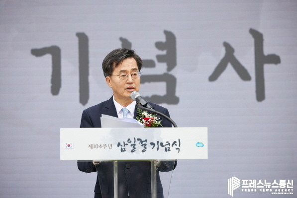 [프레스뉴스] 장현준 기자= 김동연 경지도지사는 1일 오전 수원 도담소에서 열린 104주년 3·1절 기념식에서 “경기도는 104년 전 온 겨레가 함께 외친 꿈을 담아 1,400만 도민 여러분께 더 많은 기회, 더 고른 기회, 더 나은 기회를 만들겠다”고 밝혔다.