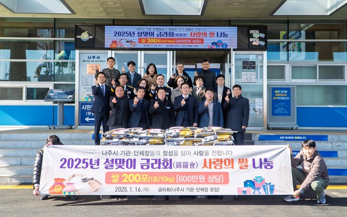 윤병태 나주시장은 “매년 명절마다 어려운 이웃을 위해 사랑 나눔을 실천해 주시는 금라회 회원들께 감사드린다“며 “나주시는 지역화폐 확대 발행, 상하수도 요금 인상 유예, 구내식당 주 1회 휴무 확대 시행 등 민생 안정을 위한 다각적인 노력을 이어가고 있으니 금라회 회원들도 지역 경제 회복을 위해 한마음으로 동참해 달라”고 당부했다.