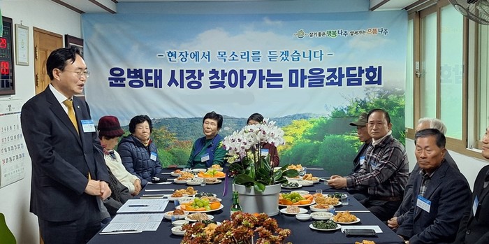 | ▲윤병태 나주시장, 산포면 샛터마을서 찾아가는 주민좌담회/나주시 제공 |