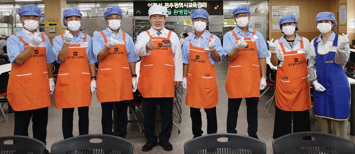 [광주=프레스뉴스] 강래성 기자= 광주시교육청(교육감 이정선)은 추석을 앞두고 8일 빛고을노인건강타운에서 급식 배식 봉사를 실시했다.