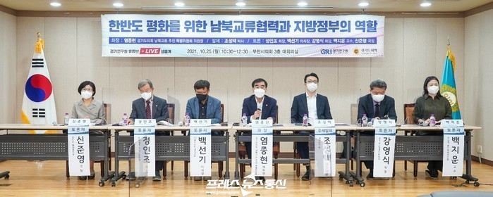 조성택 연구위원(경기연구원)이 주제발표를 했으며 정인조 회장(민주평통 부천시협의회), 백선기 이사장(부천시민교육센터), 강영식 회장(남북교류협력지원협회), 백지운 교수(서울대 통일평화연구원), 신준영 국장(경기도 평화협력국)이 토론자로 나섰다.