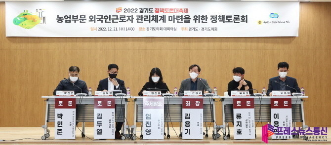 [프레스뉴스] 김대일 기자= 한국치유농업진흥회 김용기 대표가 좌장을 맡은「농업부문 외국인근로자 관리체계 마련을 위한 정책토론회」이 12월 21일(수) 경기도의회 대회의실에서 개최됐다. 경기도와 경기도의회가 공동으로 주최하는 ‘2022경기도정책토론대축제’ 일환으로 열린, 이번 토론회는 농업부문 외국인근로자 관리체계의 현황을 파악하고, 그에 따른 효과적인 관리체계 방안을 논의할 필요성이 대두됨에 따라 개최되었다.