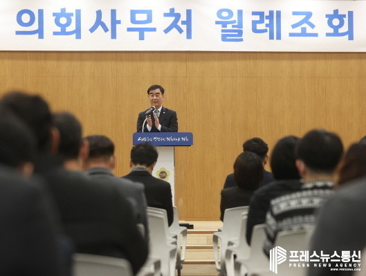 끝으로 염 의장은 ‘일하는 조직 구성’의 중요성을 언급하고, “선례를 답습하고 집행부 경험만을 중시한다면 시시각각 변하는 의정활동 수요에 재빠르게 대처할 수 없다”라며 “적극적 업무처리와 창의적 사고로 경기도의회가 하는 모든 업무가 전국 지방의회의 모범이 된다는 자부심을 갖고 업무에 임해주기를 바란다”라고 전했다.
