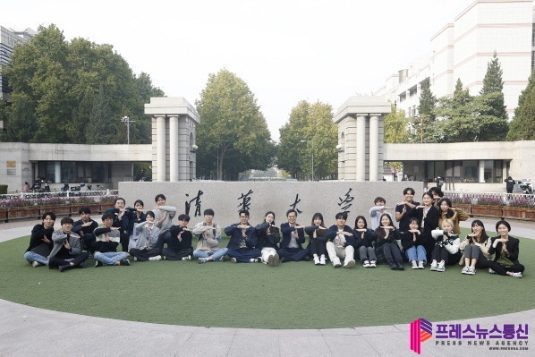 | ▲ 2일 중국 칭화대 인근에서 김동연 경기도지사와 칭화대 한국유학생회가 기념촬영을 하고 있다.(사진=경기도) |