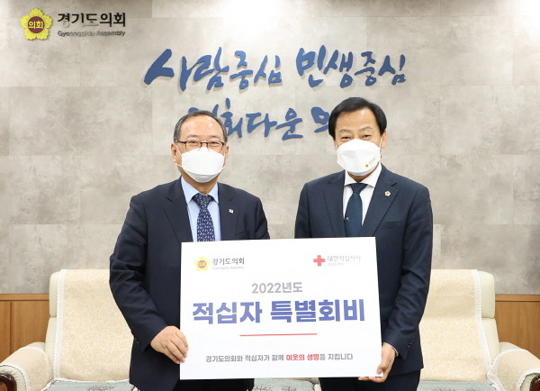 | ▲ 경기도의회 장현국 의장, 6일 ‘2022년 대한적십자사 특별회비’ 전달(사진=경기도의회) |
