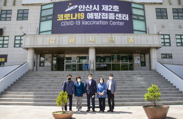 | ▲ 안산시의회 문화복지위원회 위원들이 26일 ‘안산시 제2호 코로나19 예방접종센터’를 방문한 모습. |