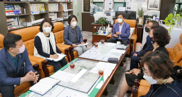 이날 도시환경위원회 박태순 위원장을 비롯한 위원들도 도시환경위원장실에서 ‘부동산중개 발전 방향 마련을 위한 간담회’를 개최했다.