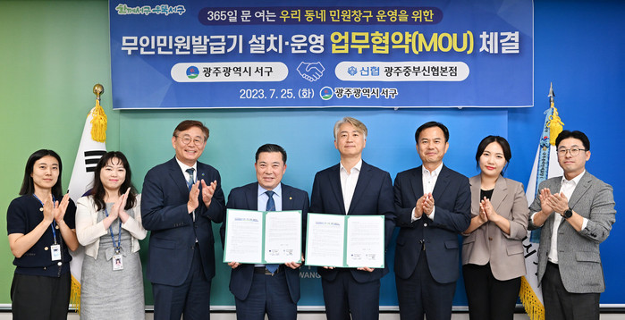 이날 협약을 통해 서구는 무인민원발급기의 설치 및 유지 관리를 담당하고, 광주중부신협은 발급기 운영에 필요한 CCTV를 제공하고 담당자를 지정해 발급기 고장 시 서구에 통보하기로 약속했다.