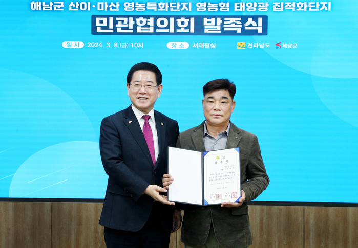 민관협의회는 27개 인접 마을 전체 주민의 사업 추진 동의를 받고, 민간 공동위원장을 포함해 총 29명으로 구성됐다. 전남도와 해남군 소속 공무원 5명, 주민대표와 특화단지협의체 16명, 전문가 8명이 참여했다.