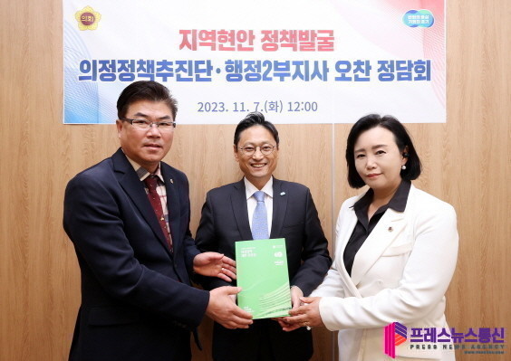 [프레스뉴스] 김대일 기자= 경기도의회(의장 염종현) 의정정책추진단은 7일 오후석 행정2부지사와 ‘지역현안 정책발굴을 위한 오찬 정담회’를 가졌다.