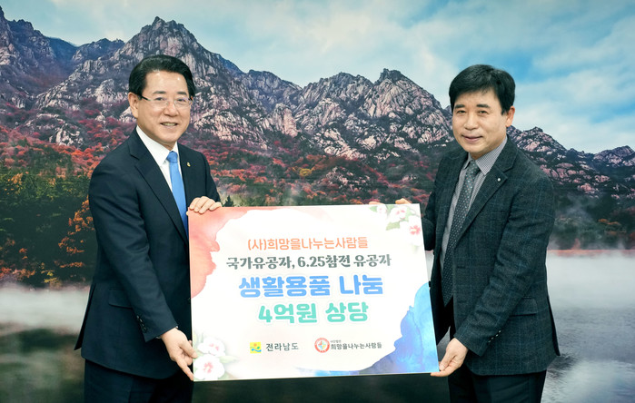 [전남=프레스뉴스] 강래성 기자= 전라남도는 21일 (사)희망을 나누는 사람들(회장 김정안)로부터 국가유공자 지원을 위해 4억 원 상당의 후원물품을 기탁받았다고 밝혔다.