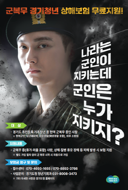 | ▲군복무 경기청연 상해보험 무료지원 홍보 포스터(사진=경기도) |