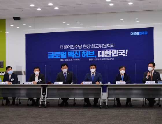 한편, 송영길 당 대표는 이날 회의에 앞서 인사말을 통해 “삼성바이오로직스를 유치했을 당시 미국을 능가한 최고의 바이오 시밀러 생산 집적단지가 만들어졌다는 자부심을 느꼈다”며 “송도에 바이오 시밀러 생산업체들이 결합해 전 인류를 구원하는 백신 생산 기지로 발전되길 기원한다”고 말했다.