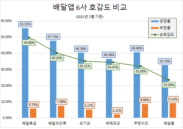 | ▲ 국내 배달앱 6개사 호감도 비교 |
