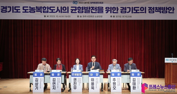 [프레스뉴스] 김대일 기자= 경기도의회 이용욱 의원(더불어민주당, 파주3)이 좌장을 맡은 「경기도 도농복합도시의 균형발전을 위한 경기도의 정책 방안」 토론회가 지난 4일(수) 파주시민회관 소공연장에서 개최됐다.