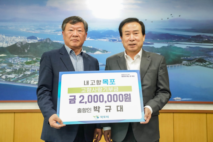 [전남=프레스뉴스] 이광남 기자= 전남 목포시는 지난 10일 목포 출신 출향인 박규대 기부자가 고향사랑기부금 200만원을 기탁했다고 밝혔다.