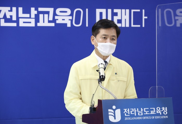 장석웅 전라남도교육감은 9월 6일(월) 오후 청사 2층 기자실에서 비대면 긴급 브리핑을 갖고, 이같은 내용의 학교 내 코로나19 감염확산 방지 긴급대책을 발표했다.
