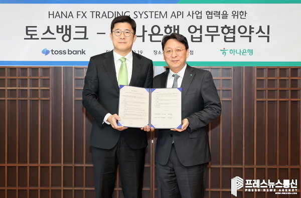 [프레스뉴스] 김대일 기자= 하나은행(은행장 이승열)은 19일 오전 을지로 본점에서 토스뱅크(대표이사 홍민택)와 실시간 환율을 적용한 『24시간 다통화 FX 거래』 활성화를 위한 업무협약을 체결했다고 밝혔다.