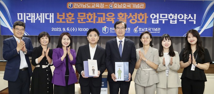 두 기관은 9월 6일(수) 전라남도교육청에서 김대중 교육감과 이형남 호남호국기념관장을 비롯한 관계자들이 참석한 가운데 업무협약을 체결하고, 전남의 아이들이 나라사랑 의식을 갖춘 미래인재로 성장하는 데 힘을 모으기로 했다.