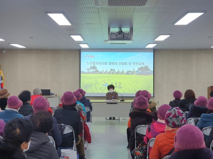 [전남=프레스뉴스] 차윤기 기자= 군남면(면장 박순희)은 지난 13일 면사무소 2층 대회의실에서 노인일자리사업 참여자 50명을 대상으로 안전교육 및 간담회를 실시했다.