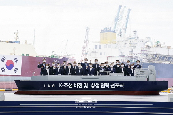 이어 “우리 정부는 조선과 해운을 따로 보지 않고, 조선산업과 해운산업을 연계 시켜 함께 회복하고 함께 성장하는 전략을 세웠다”며 “한진해운의 파산을 극복하기 위해 2018년 ‘해운 재건 5개년 계획’을 수립하고 한국해양진흥공사를 설립하여 국적선을 건조하기 위한 대대적인 정책금융 지원한 결단은 해운업과 조선업을 동시에 살리는 윈윈 전략이 되었다”고 설명했다.