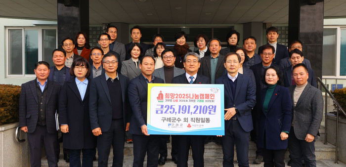 한편 ‘희망2025나눔캠페인’은 ‘기부로 나를 가치있게, 구례를 가치있게’라는 주제로 오는 31일까지 진행된다. 캠페인 참여는 전남사회복지공동모금회(061-902-6800)로 문의하거나 방송사, 군청, 읍면사무소를 방문해 할 수 있다.
