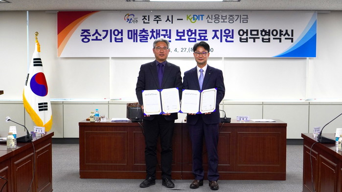 [프레스뉴스] 정재훈 기자= 진주시는 27일 오전 시청 상황실에서 신용보증기금과 ‘중소기업 매출채권보험료 지원사업’에 관한 업무협약을 체결했다.