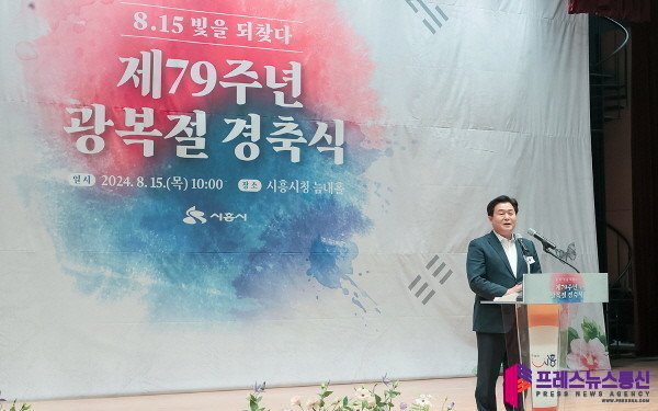 [프레스뉴스] 장현준 기자= 시흥시(시장 임병택)는 제79주년 광복절을 맞아 광복의 의미와 순국선열의 나라 사랑 정신을 되새기고자 15일 시흥시청 늠내홀에서 광복절 경축 행사를 마련했다.