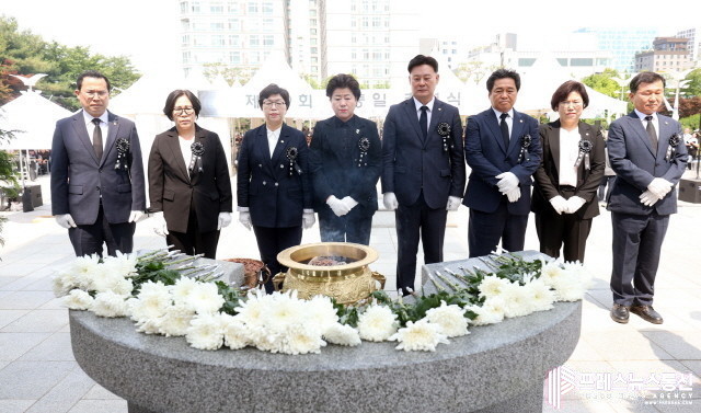 이날 추념식에는 경기도의회 남경순 부의장(국민의힘, 수원1)과 최종현(더민주, 수원7)·박옥분(더민주, 수원2)·서현옥(더민주, 평택3)·이오수(국민의힘, 수원9)·이애형(국민의힘, 수원10)·(국민의힘, 수원11) 힌원찬(국민의힘, 수원6)·김호겸(국민의힘, 수원5) 의원, 김동연 경기도지사, 이재준 수원시장 등이 참석했다.