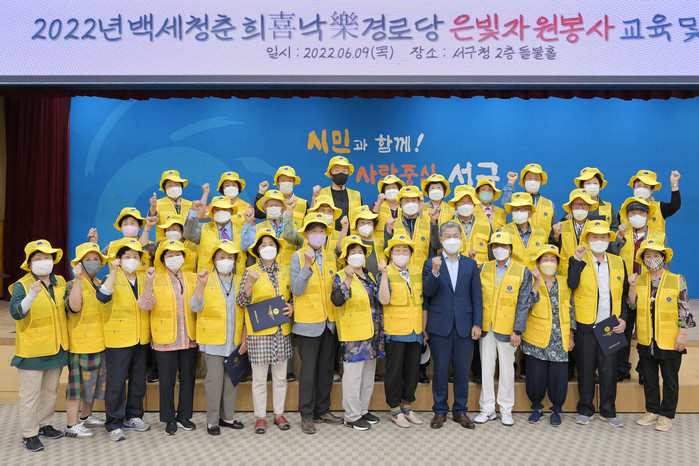 은빛자원봉사단은 노인의 삶의 경륜을 사회에 환원하고 활기찬 경로당 육성에 기여하고자 구성되었으며, 서구 관내 경로당에서 약 200여 명의 어르신들이 참여하게 된다.