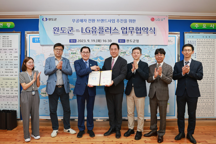[전남=프레스뉴스] 박정호 기자= 전남 완도군은 지난 5월 환경부 주관 「2023 지역별 무공해차 전환 브랜드 사업」 공모에 선정됨에 따라 사업 추진을 본격화하기 위해 지난 19일 완도군청에서 LG유플러스와 업무 협약을 체결했다.
