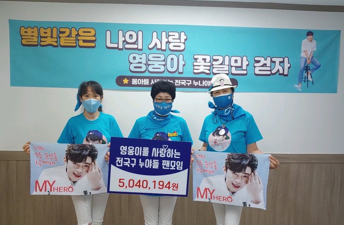 영웅이를 사랑하는 전국구 누야들 팬모임, 500여만원 기탁