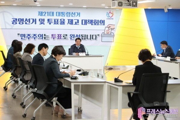 [프레스뉴스] 장현준 기자= 안양시가 오는 6월 3일 실시되는 제21대 대통령선거를 앞두고, 공무원의 정치적 중립을 재강조하고 시민들의 참정권 행사를 적극적으로 유도하기 위해 19일 오후 2시 시청 3층 상황실에서 ‘공명선거 및 투표율 제고를 위한 대책회의’를 열었다.