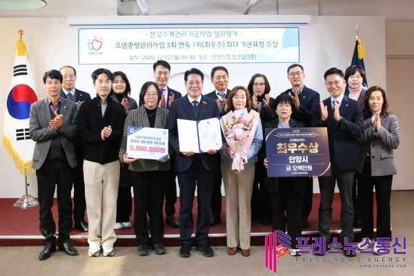 | ▲한강수계관리기금사업 성과평가 3회 연속 1위 기념 전수식 사진.(사진= 안양시) |