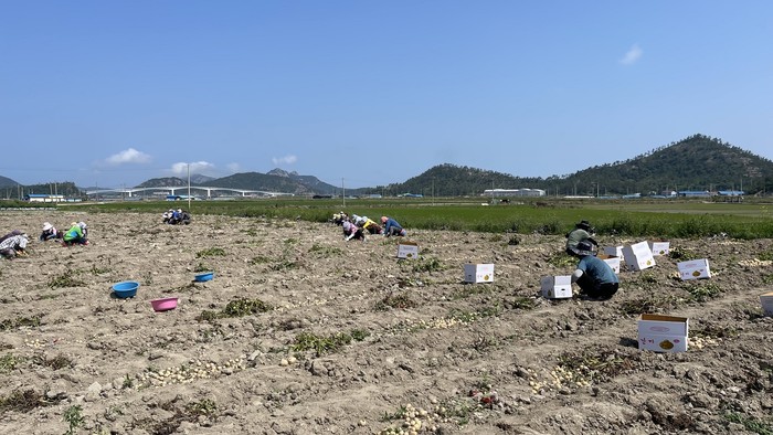 [전남=프레스뉴스] 강래성 기자= 신안군 도초면 농가주부모임(회장 문희)에서는 6월 감자 수확 철을 맞아 나박포마을 소재 500여 평 농지에서 감자를 수확하여 도초면 관내 경로당 36개소에 1박스씩(13kg) 전달해 훈훈한 나눔을 실천했다.