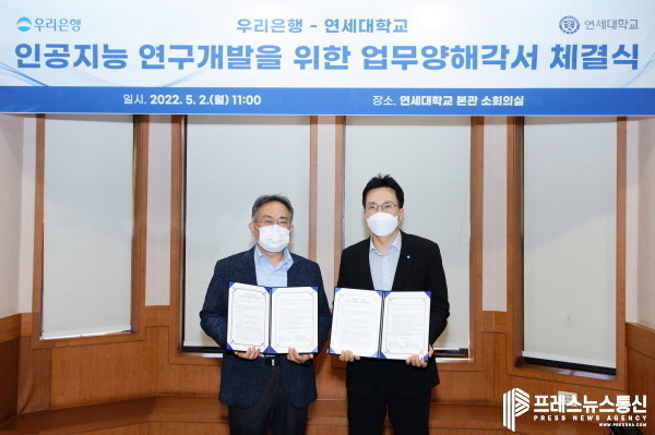 [프레스뉴스] 김대일 기자= 우리금융지주의 자회사 우리은행(은행장 이원덕)은 연세대학교와 인공지능 연구개발을 위한 업무협약을 체결했다고 2일 밝혔다.