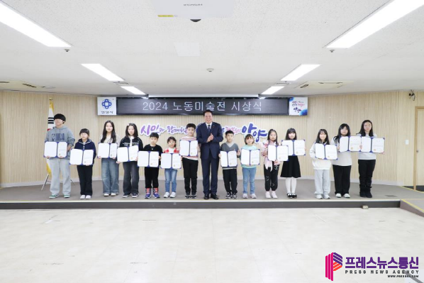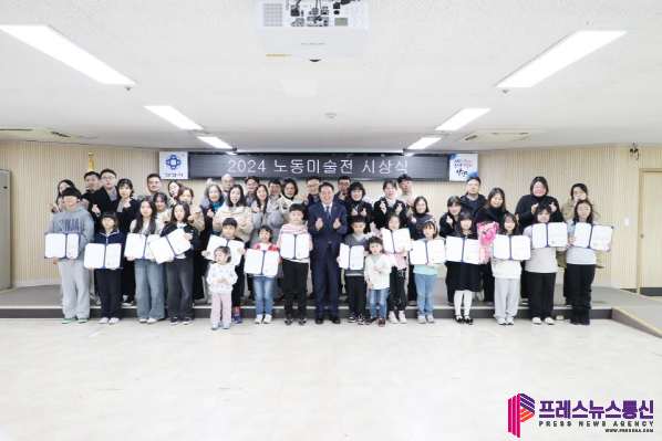[프레스뉴스] 장현준 기자= 안양시노동인권센터(센터장 손영태)가 주최한 노동미술전 시상식이 24일 안양시청 4층 회의실에서 성황리에 진행됐다. 이번 행사는 안양시 관내 초등학생들을 대상으로 노동에 대한 인식을 증진시키고 그 가치를 고민해 보기 위한 목적으로 개최된 2024 노동미술전의 수상자들을 축하하고 격려하기 위하여 마련됐다.
