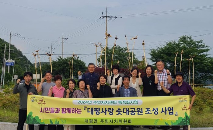 이번 사업은 2024년 진주시 주민자치센터 특성화사업 공모에 선정되어 지난 4월부터 진행됐으며, 대평면 주민자치위원 20여 명은 솟대 나무를 한 달 이상 말리고 다듬는 등 각자의 재능을 기부해 솟대정원을 조성했다.