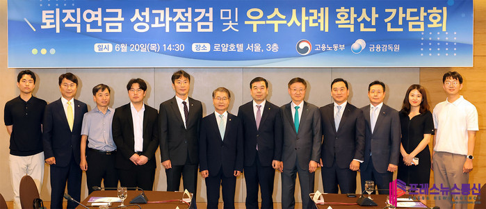 이 날 간담회에는 이정식 고용노동부장관, 이복현 금융감독원장, 박종길 근로복지공단 이사장 및 이승열 하나은행장을 비롯한 ‘23년 퇴직연금사업자 성과 및 역량평가’에서 우수 사업자로 선정된 4개 금융회사의 대표이사들이 참석했다.