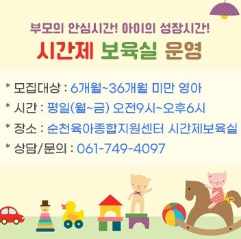 | ▲ 순천시 육아종합지원센터 시간제보육실 운영 안내/순천시 제공 |